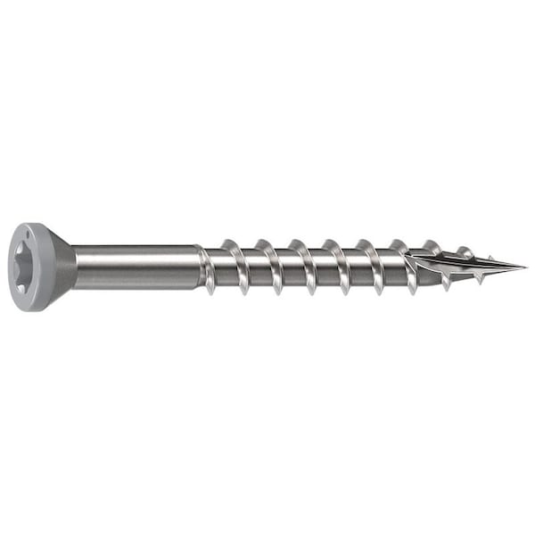 Camo Deck Screw, Thread Size: 0.163 in, 1-5/8 in L, Head Type: Trim, Drive Type: Star, Point Type: Sharp, Type-17, 316 Stainless Steel, Painted, Package Quantity: 100, Thread Length: 1.16 in, Drive Size: T15, Marine Grade, Gray, Applicable Materials: PVC, Wood, Includes: T15 Power Bit