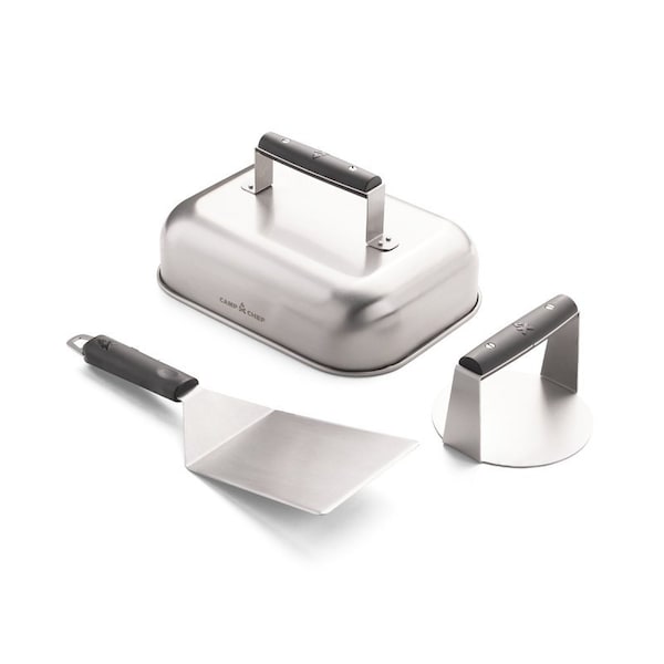 Cook the topsmash burgers by having the right gear. The smash burger kit gives you the necessities for making the ultimate smash burger. The smash burger accessory kit comes with a burger spatula, burger press and a melting dome.