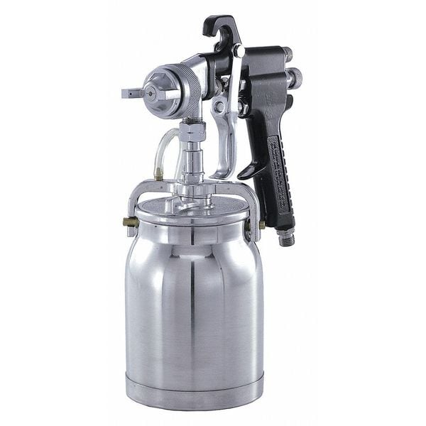 Spray Gun, Very Low to Medium, Fluid Delivery Type Siphon, Air Consumption 3.8 cfm @ 40 psi, Nozzle Size 1.8 mm, Pattern Size 9.5 in, Cup Capacity 1 qt, Air Inlet 1/4 in, Includes External Mix Air Cap