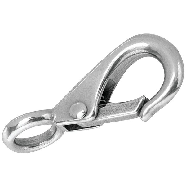 Rigid round eye quick snap. Constructed of durable stainless steel featuring a polished finish.
