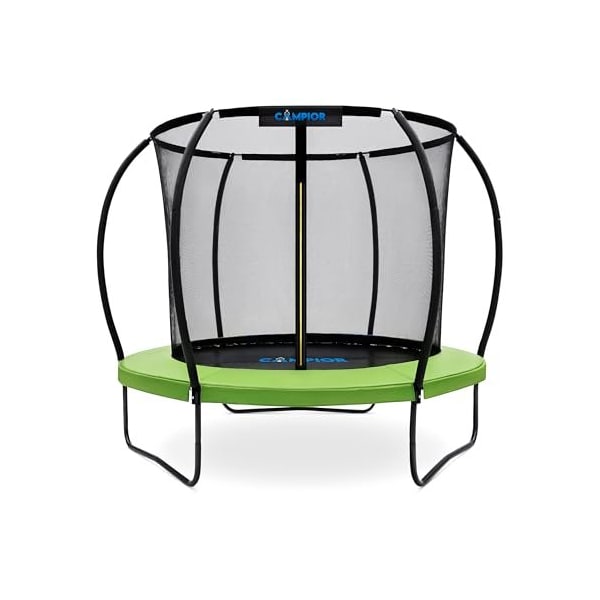 8ft Pumpkin Trampoline with Inner Enclosure, Safe Curved Poles, UV Mat, Galvanized Springs