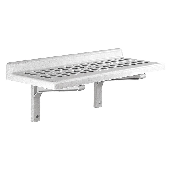 Wall Shelf Kit, Solid Shelf Style, 150 lb Load Capacity per Shelf, Number of Shelves 1, Usable Depth 36 in, Usable Width 14 in, Mounting Mechanism Direct, Screw and Snap On and Off Mounting Type, Overall Depth 36 in, Overall Height 13 in, Overall Width 14 in, 150 lb Load Capacity, Bracket, Screw, Washer, Includes Mounting Hardware Yes, Polypropylene, Fixed, Assembled Unassembled, Gray, Speckled, NSF