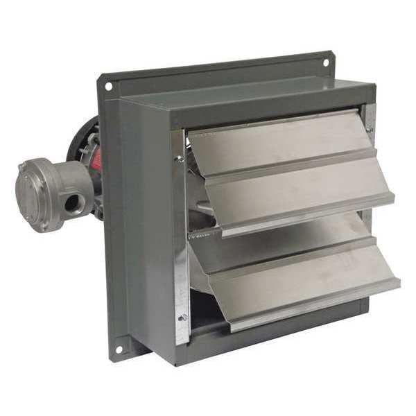 Shutter Mounted Hazardous Location Exhaust Fan, Assembled Assembled, Blade Diameter 8 in, Blade Material Aluminum, Control Type Toggle Switch, Drive Type Direct Drive, Duct Diameter Not Applicable, Exhaust Airflow @ 0.000 in SP 320 cfm, For Cut-Out Height 11 in, For Cut-Out Width 12 in, For Maximum Wall Thickness 4 in, For Minimum Wall Thickness 4 in, Frame Finish Powder Coated, Frame Material Steel, Guard Finish Chrome, Guard Material Steel, Guard Type Intake