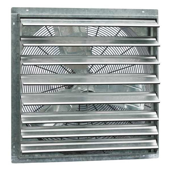Galvanized Shutter Fan, Blade Diameter 30 in, Blade Material Steel, Exhaust Airflow @ 0.000 in SP 5,088 cfm, Frame Finish Galvalume, Frame Material Aluminum, Guard Material Chrome Plated Wire, Includes Adjustable Thermostat and Bypass, Blade, Motor, Shutter, Temperature, Maximum Noise Level Not Applicable