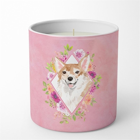 10 oz Corgi Pink Flowers Decorative Soy Candle