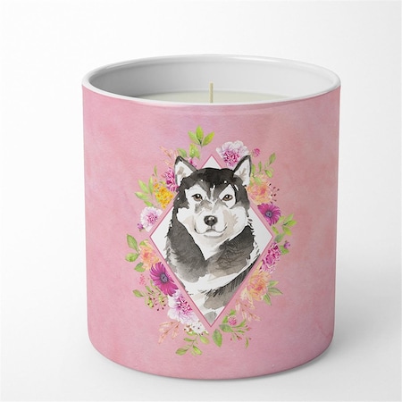 10 oz Alaskan Malamute Pink Flowers Decorative Soy Candle