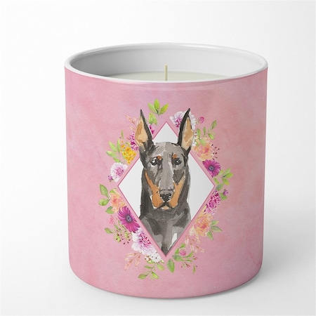 10 oz Doberman Pinsher Pink Flowers Decorative Soy Candle
