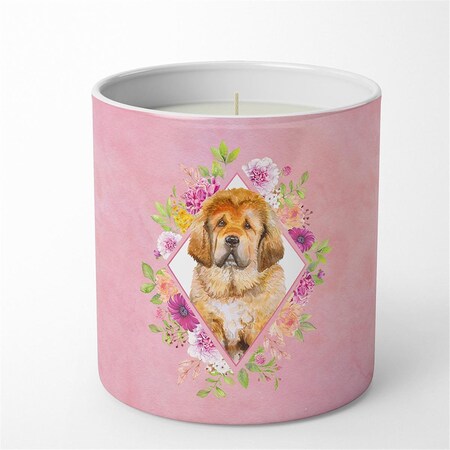 10 oz Tibetian Mastiff Puppy Pink Flowers Decorative Soy Candle