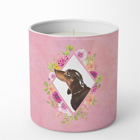 10 oz Black & Tan Dachshund Pink Flowers Decorative Soy Candle
