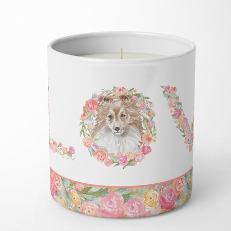 10 oz Sheltie Shetland Sheepdog Pink Flowers Decorative Soy Candle