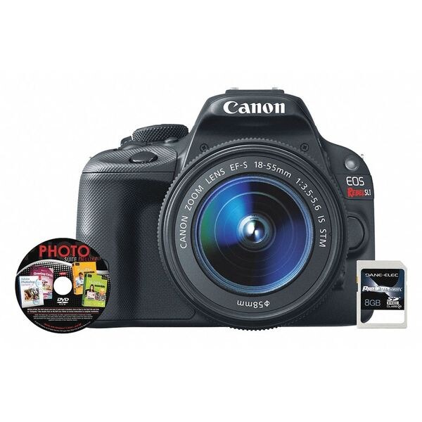 Digital Camera Kit, Digital, 18 Megapixels, 65X Optical Zoom, 1140X Digital Zoom, LCD Size 3 in, Lens Focal Length 28 to 224mm, Focus Range Up to 30 ft, Flash Range 1.6 to 18 ft, Film Yes, Resolution 5184 x 3456, Media Type SD, SDHC, SDXC Memory Card, Includes EF-S 18-55mm Lens, Photo Suite Deluxe Software, 8 GB SDHC Card, Lithium-Ion Battery Pack, Battery Charger, Eyecup EF, Cover, Wide Strap, USB Interface Cable