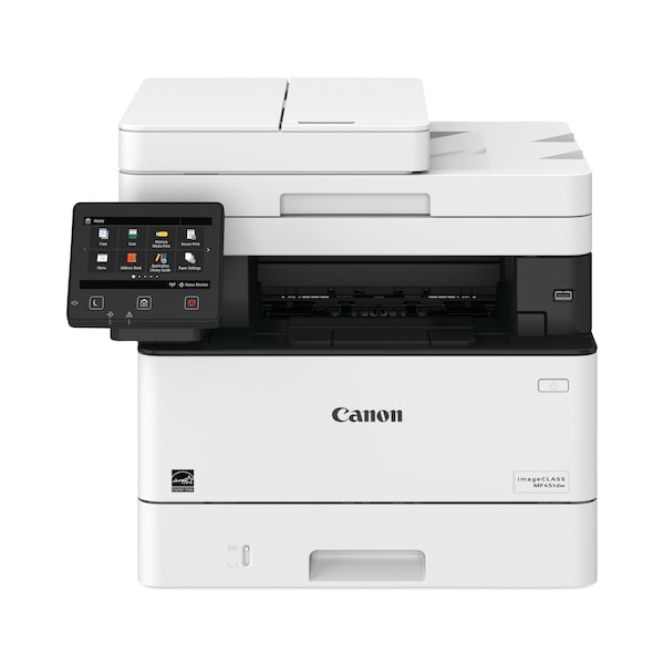 The imageCLASS MF451dw is designed for small office environments where black-and-white multifunction capability is needed, and productivity, ease of use and large toner and paper capacity are priorities. Print up to 34 pages-per-minute with a first print out in less than six seconds (letter). One Pass Duplex Scan allows you to obtain a two-sided scan with one pass through the automatic document feeder. This model has expandable paper capacity of up to 900 sheets and is backed by Canon's Service and Support network.