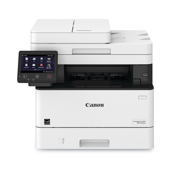 Designed for small and medium-size businesses, the imageCLASS MF455dw model balances speedy performance, minimal maintenance, and the ability to add an optional paper tray. A 5" color touchscreen delivers an intuitive user experience and can be customized by a device administrator to simplify many daily tasks. The imageCLASS MF455dw uses Canon Genuine Toner 057 Black and 057 High Capacity Black.