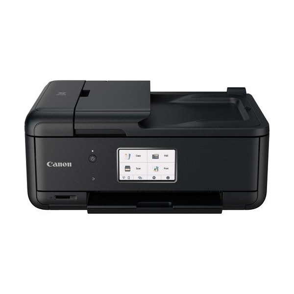 Use this TR8620A Wireless All-In-One Printer to meet your home and work needs when printing, copying, scanning or faxing. Printer handles a variety of tasks from scanning signed contracts with the auto document feeder to printing from your smartphone. Printer features a 4.3in LCD touch screen, front/rear paper feeder and five individual-ink system. Front/rear paper feed holds plain paper in the front cassette, and rear tray extends to print on photo paper or other paper types. Enjoy sharp, black text for documents and great-looking photos thanks to the hybrid ink system. It prints a 4in x 6in photo in approximately 37 seconds and generates 10 ipm color. When copying, it makes 6.8 ipm color. Use the 20-sheet ADF to copy, scan and fax multiple documents with ease. Printer's resolution is up to 4800 x 1200 dpi. Standard interface uses Hi-speed USB, Ethernet, PictBridge, Wi-Fi, memory card slot and Bluetooth 4.0 LE.