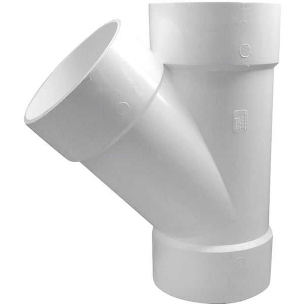 CANPLAS Pipe Wye, 6 in Nominal Size 1, 6 in Nominal Size 2, 6 in Nominal Size 3, Hub Connection Type 1, Hub Connection Type 2, Hub Connection Type 3, 40 Schedule, PVC, White