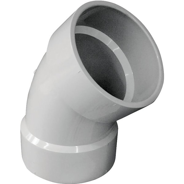 CANPLAS Sanitary Elbow, 6 in Nominal Size 1, 6 in Nominal Size 2, Hub Connection Type 1, Hub Connection Type 2, 45 deg Angle, PVC, White