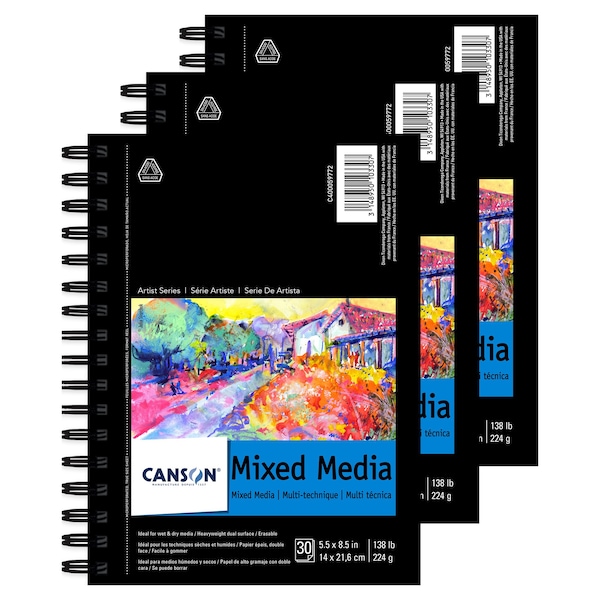 Artist Series Mixed Media Pad, Side Wire Binding, 30 Sheet, 5.5x8.5 inch, 3PK