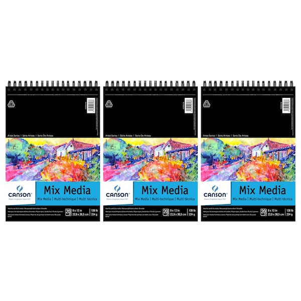 Artist Series Mixed Media Pad, Top Wire Binding, 20 Sheet, 9x12 inch, 3PK
