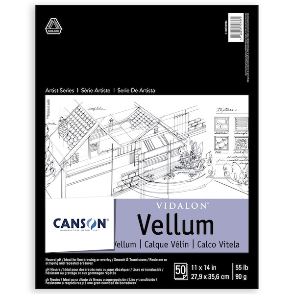 Artist Series Vidalon Vellum Pad, Translucent, Foldover Binding, 50 Sheet, 11X14 inch
