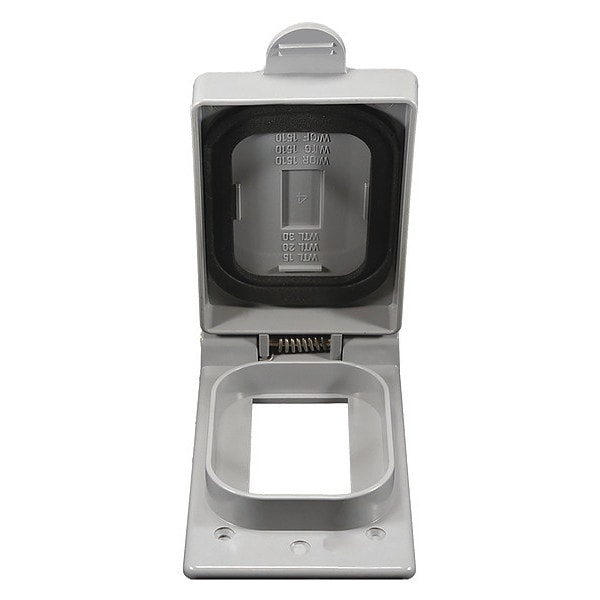 Weatherproof Cover, Mounting Box PVC Boxes, For Use With GFCI Receptacles, Mounting Orientation Vertical, Lid Style Self Closing, Number of Gangs 1, Gasket Material Polymeric/Third Party, Cover Material PVC, Color Gray, Height 1 in, Width 5 1/2 in, Depth 3 in, Standards UL Listed, Includes Gaskets, Screws