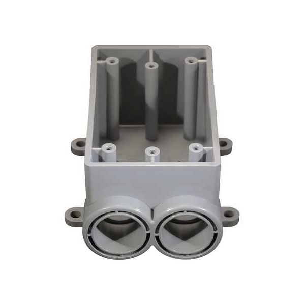 Electrical Box, Box Type FSS, Number of Gangs 1, Bracket Type Bracket Not Included, Capacity 21.8 cu in, Material PVC, Clamp Type Clamp Not Included, 2 on One End Hub Location, Number of Hubs 2, Rated Outdoor, Color Gray, Standards UL Listed