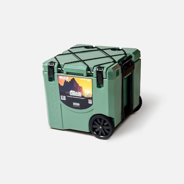 The Mule is fitted with hard-wearing wheels that make transporting 32 quarts of the good stuff from one location to another a breeze. When your hands are full, with more to carry just throw that extra bag on the cooler or use the integrated jungle cord bungee for your coats, blankets, or the favorite lure box. Efficiently packs with our clean square design and no wasted space. It's ideal for boat docks, Vegas resorts, athletic fields, tailgating or anywhere you want to take your provisions along on your terms. Holds 2L bottle upright.