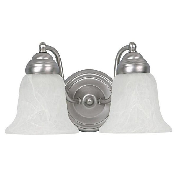 2 Light Vanity Fixture with Matte Nickel Finish and Faux White Alabaster Glass