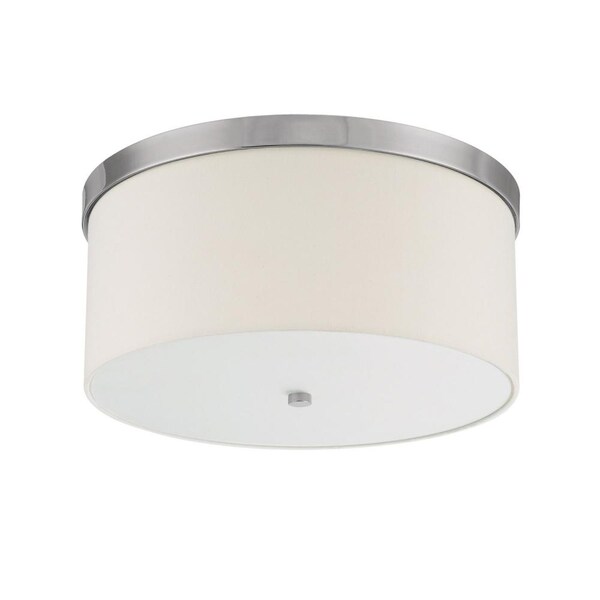 Illuminate any space in your modern home with the sleek styling of our Studio ceiling fixture. With a Polished Nickel frame and finial, it features a decorative white fabric shade and frosted glass diffuser to provide chic illumination in virtually any room.