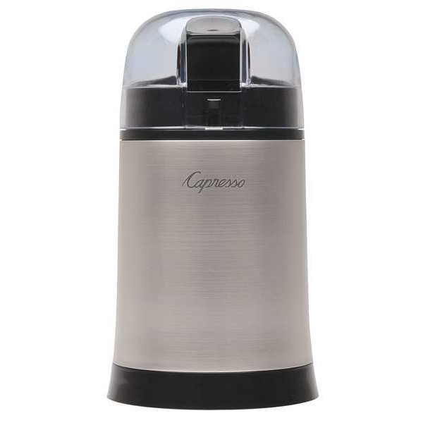 Coffee and Spice Grinder, Hopper Type Single Hopper, Capacity 0.2 lb, Overall Height 7 1/2 in, Overall Width 4 in, Overall Depth 4 1/4 in, Material Stainless Steel, Color Silver, Voltage 120V AC, Current 1.5 A, Standards ETL Listed, Wattage 160 W, Weight 2 lb