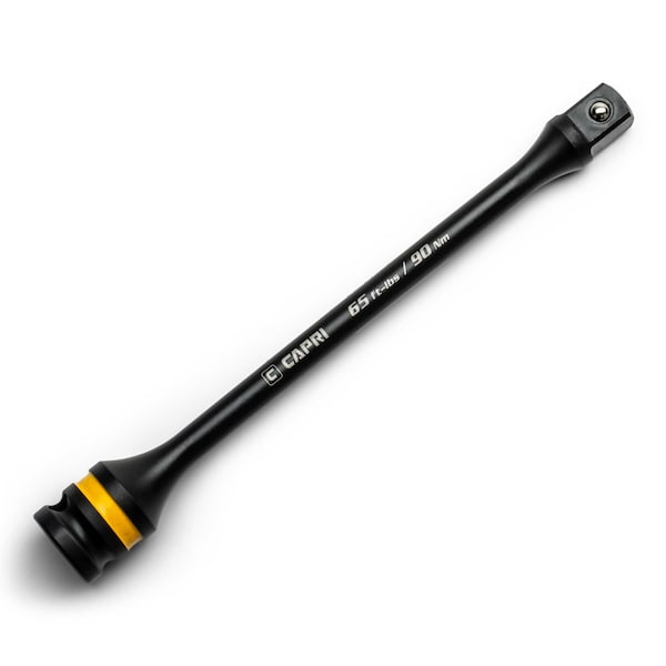 Use torque limiting extension bar with an impact wrench to ensure consistently accurate torque for your fasteners. Premium Chrome Molybdenum steel construction. 1/2 in. Drive. 65 ft. lbs. (90 Nm) torque limit. 8 in. long with color coded ring for quick identification. The Capri Tools Torque Limiting Extension Bars are a must if you use an impact wrench for tightening fasteners. This ensures that you achieve consistent torque accuracy on each and every piece. Made with premium Chrome Molybdenum construction. 1/2 in. Drive, 8 in. long with color coded ring for quick identification.