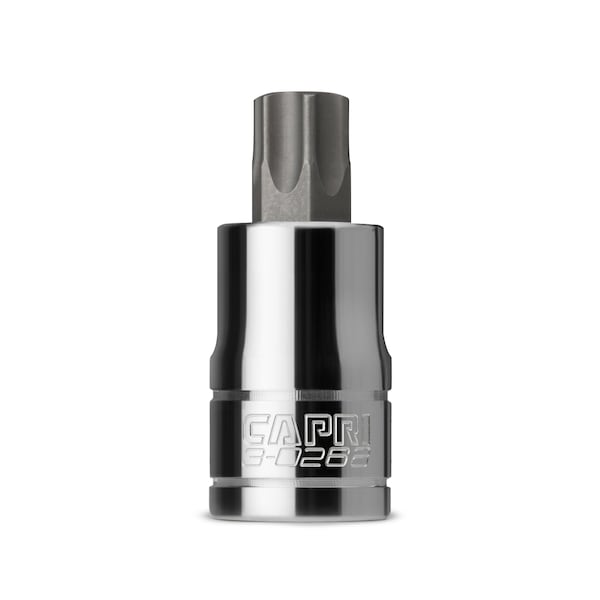 The Capri Tools bit sockets are made for the most demanding professionals. Each of our bit sockets is made from custom forged steel that underwent a proprietary heat treatment process and precisely machined to perform in toughest situations. Premium S2 steel forged bits are exceptionally strong and durable. They withstand high torque and do not twist, protecting both the bit and the fastener. All bits feature chamfered end to ensure a smooth fit onto fasteners. The sockets are constructed with premium Chrome Vanadium steel and plated with our own SmartKrome protective plating. They are durable and resist corrosion. Meets and exceeds ASME B107.110 standards. Single 1/2 in. drive, T60 star bit socket.