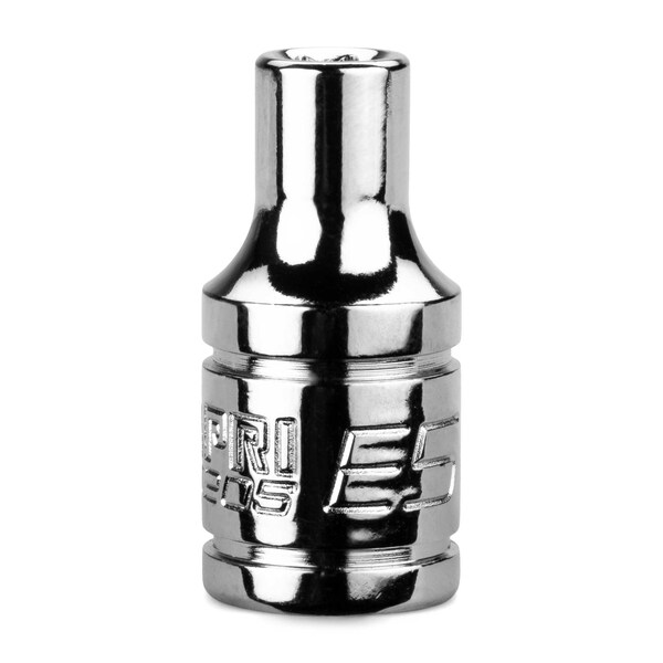 Capri Tools high performance sockets are trusted by professionals for even the most demanding applications. We use premium Chrome Vanadium steel tempered with our proprietary heat treatment process to make these sockets. They are durable and withstand more torque. Each socket underwent careful polishing and protective plating process to achieve our own SmartKrome finish. WaveDrive design grips fasteners more tightly than traditional design, preventing fastener rounding and giving you more leverage. Single 1/4 in. drive, external star E5 socket.