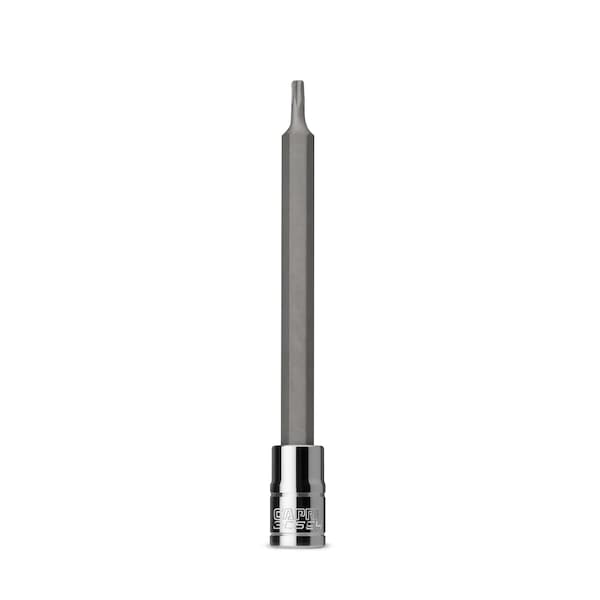 The Capri Tools bit sockets are made for the most demanding professionals. Each of our bit sockets is made from custom forged steel that underwent a proprietary heat treatment process and precisely machined to perform in toughest situations. Premium S2 steel forged bits are exceptionally strong and durable. They withstand high torque and do not twist, protecting both the bit and the fastener. All bits feature chamfered end to ensure a smooth fit onto fasteners. The sockets are constructed with premium Chrome Vanadium steel and plated with our own SmartKrome protective plating. They are durable and resist corrosion. Meets and exceeds ASME B107.110 standards. Single 1/4 in. drive, long T10 star bit socket (3-1/16 in. long bit).