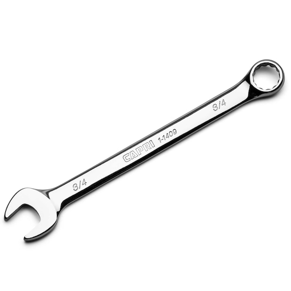 This Capri Tools Combination Wrench is made for serious professionals in high torque environment. We use the purest premium Chrome Vanadium steel and a complete 10-step state of the art heat treatment process to make these combination wrenches. The result is a set of combination wrenches that does not break under high torque pressure. Each combination wrench underwent careful polishing and protective plating process to achieve its flawless polish. Constructed longer than standard-pattern wrenches, our wrenches give you more leverage and access to hard to reach areas. The 12-point box end has our WaveDrive design that transfers torque uniformly and prevents damaging and rounding of the bolt. 15-degree angle offset give you knuckle clearance and also helps you navigate in tight spots. A heavy duty, high quality roll up canvas pouch is included to carry these combination wrenches. SAE size: 3/4 in. The Capri Tools Combination Wrench Set meets ASME B107.100 standards.