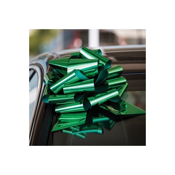 Bring the holidays to your windshields. Ships flat, just pull the string and create your bow in a flash! Conveniently ties to a suction cup for use on a vehicle windshield or use them to decorate the showroom, office cubicles or any large gift worthy of a beautiful bow! This bow has a 12 inch diameter with 8 inch long tails. Made from 4 inch wide shiny weather resistant material, these bows can be used indoors or outdoors. The size of this bow allows them to be used on the windshield to highlight a price, year or vehicle feature. Or use on anything that needs a big shiny bow!