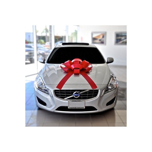 If this large car bow will be used on non-metal hoods or glass, please select Adhesive Tape in the drop down above. There is no charge for the tape at this time. Dimensions: 30" wide with two 30" long x 4 1/2" wide tails. Designed to be used indoors or outdoors. Made of high quality weather resistant, waterproof vinyl. Non-scratch soft magnetic base holds bow to vehicle hood or roof. No assembly required. Available in nine colors.