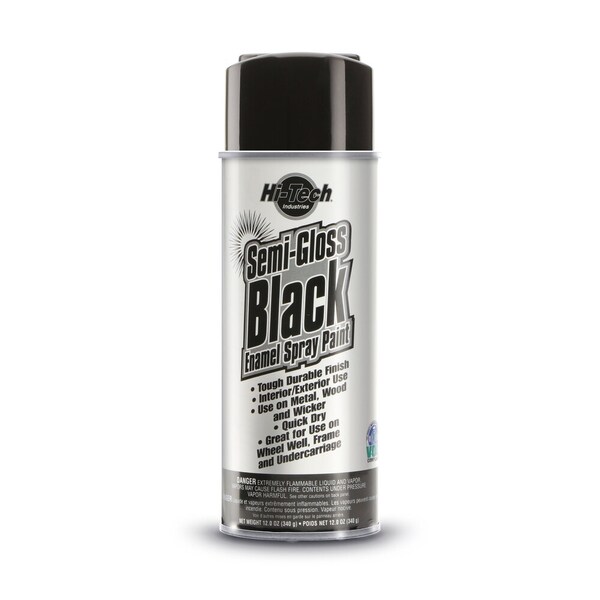Semi Gloss Black Enamel. Premium paint that covers easily to provide a tough, durable, heat resistant finish. Used for wheel wells and undercarriages. Can also be used on most types of metal and wood. Hi-Tech paints are specially formulated to dry quickly and smoothly. Aerosol can net weight 12 oz. California / OTC VOC Compliant.
