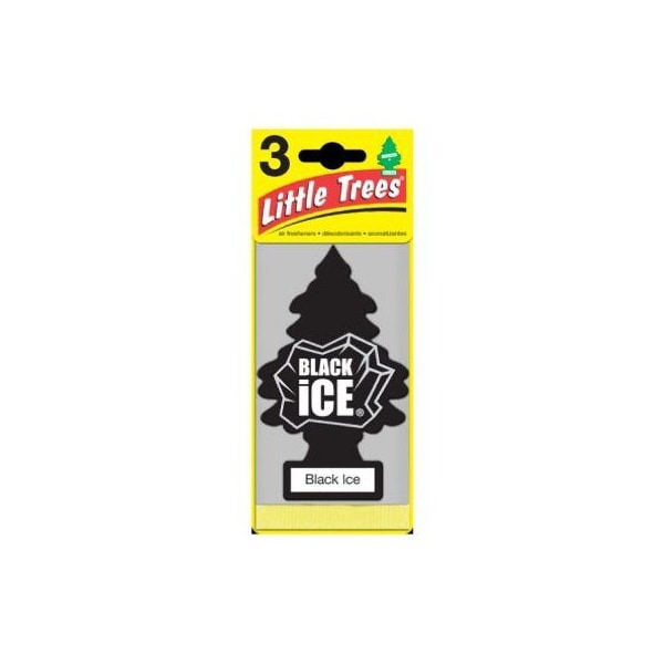 Little Trees car air freshener hanging tree provides long lasting scent for auto or home. 3 Pack pine tree shape with Black Ice scent. Air freshener offers a mysteriously enticing masculine blend of citrus and woods.