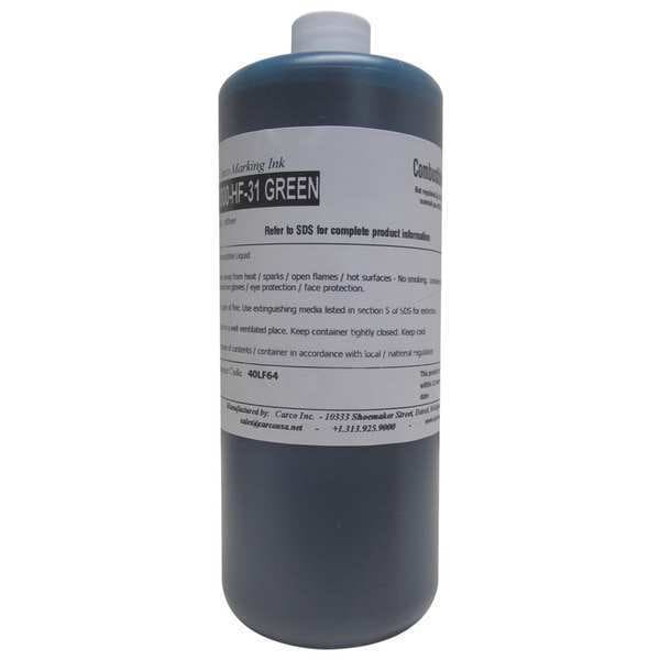 Marking Ink, Base Type Solvent, Combustible Combustible, Compatible Marking Systems Spring Contact, Compatible Product Series ES-1518, ES-612, Container Size 1 qt, Dry Time 15 min, Features High-Flash, Flammability Flammable, Ink Color Green, Ink Type Dye, Product Type Marking Ink