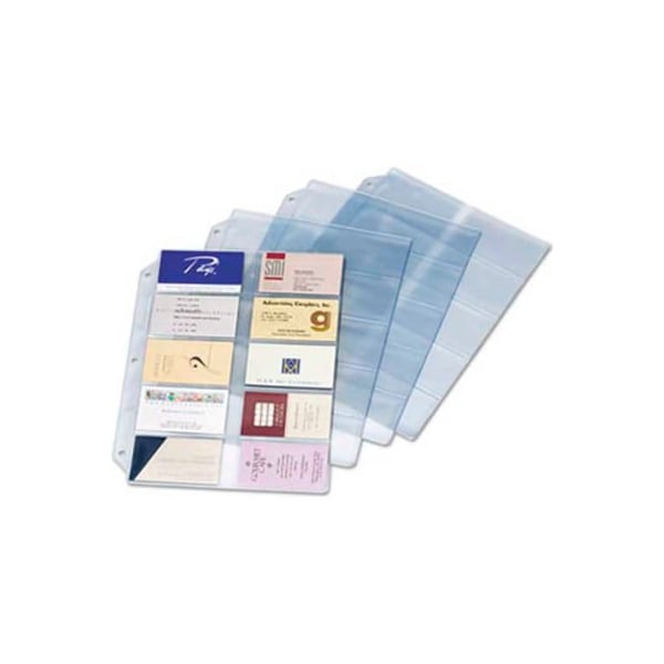 letter-sized, three-hole punched pages provide slots for standard business and credit cards. Durable vinyl features a non-glare finish. Designed for front and back of page storage. Holds 20 cards per page (front and back). 10 sheets per pack. larger quantity quotes available. Please call 1-888-978-7759. this product arrives to most customers in 2-3 business days.