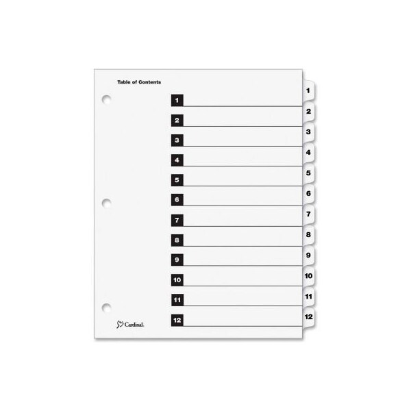 Cardinal OneStep Printable T.O.C. Divider, Printed 1 to 12, 9"x11", 12 Tabs, White/White