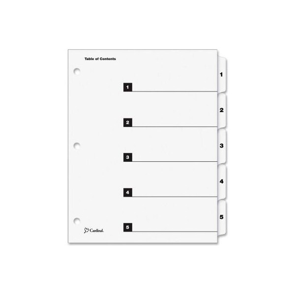 Cardinal OneStep Printable T.O.C. Divider, Printed 1 to 5, 9"x11", 5 Tabs, White/White