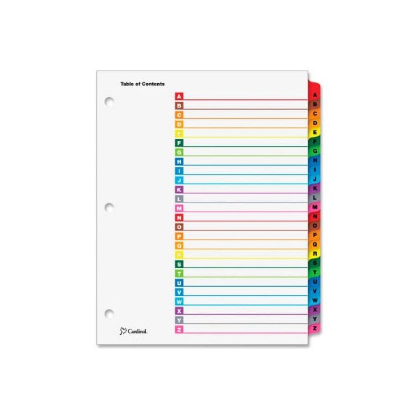 Cardinal OneStep Printable T.O.C. Divider, Printed A to Z, 9"x11", 26 Tabs, White/Multicolor