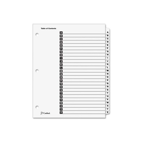 Cardinal OneStep Printable T.O.C. Divider, Printed A to Z, 9"x11", 26 Tabs, White/White
