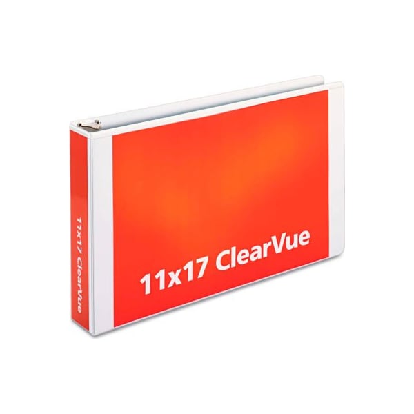 Cardinal Tabloid ClearVue Slant-D Ring Binder, 2in Capacity, 11 x 17, White