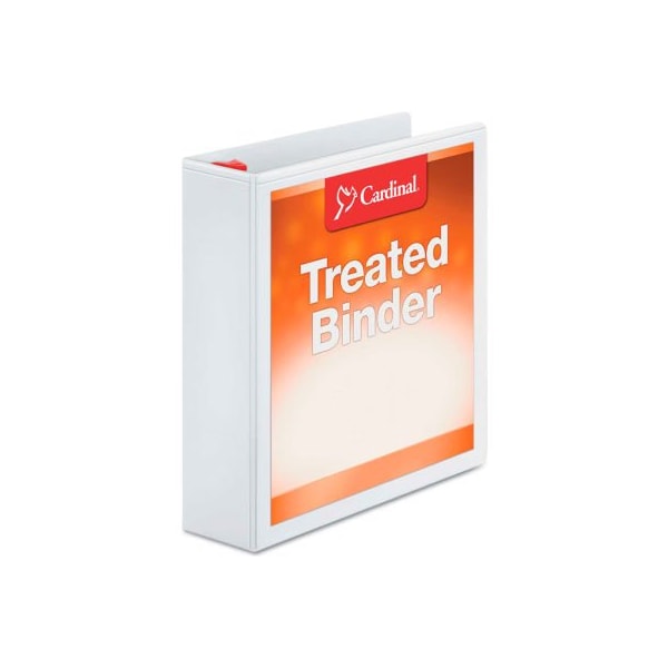 Cardinal treated clearvue locking slant-d ring binder, 2" capacity, white treated binders contain antimicrobial properties built in to protect the product. Locking slant-d rings keep papers secure and hold up to 25% more material than standard round rings. Pvc-free, poly material will not stick to cover inserts or materials inside. Clear overlays on front, back and spine for quick and easy customization. Comfortable geltab triggers. Horizontal pockets on inside front and back covers. larger quantity quotes available. Please call 1-888-978-7759. this product arrives to most customers in 2-3 business days.