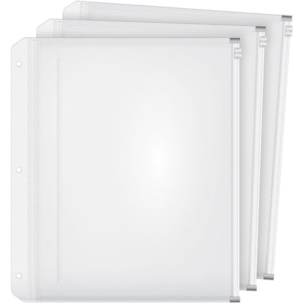 Expanding binder pockets keep and protect unpunched documents, photos and other loose items. Each pocket expands up to 1/2" to hold 100 sheets of letter-size paper, note or other accessories. Secure documents with zipper closure. Three-hole punched design lets the pockets fit easily into any standard binder. Durable polypropylene material is archival-safe and acid-free and will not lift or transfer inks or toners
