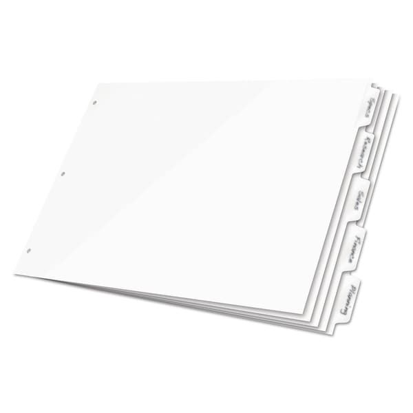 Special coated tabs allow use of any pen, pencil or non-permanent marker. Erases clean and ready to use again. Instant index tabs no time consuming tab typing or insertion. White tabs for a clean, crisp, professional appearance. Use with 11" x 17" sheets.