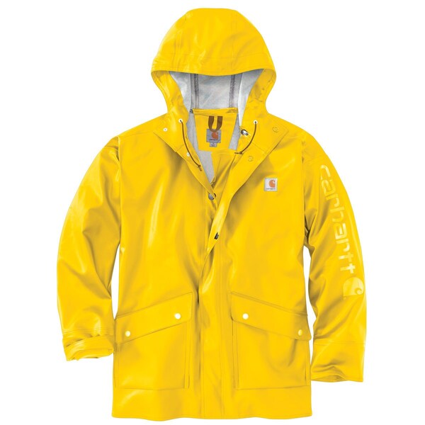 Whether you're hosing down the barn or digging an irrigation ditch, this coat keeps you working through it all. It's tough, midweight polyester with a waterproof poly/vinyl coating that locks out water. Adjustable drawcord hood, double storm flaps, internal rib-knit cuffs add to the protection. Two snap-close front pockets.