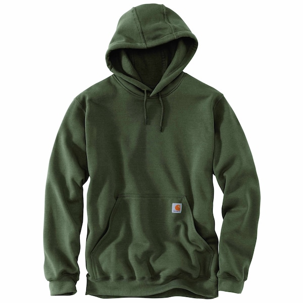 Exclusive Trimming, Machine wash cold like colors, Do not bleach, Tumble dry low, Cool iron, Do not dry clean 10.5-ounce, Solids and Heathers: 50% cotton/50% polyester blend or 59% cotton/41% polyester blend; Heather Gray: 70% cotton/30% polyester blend, Attached three-piece hood with drawcord closure, Front handwarmer pocket, Stretchable, spandex-reinforced rib-knit cuffs and waistband, Carhartt-strong triple-stitched main seams, Carhartt label sewn on pocket, Imported This men's hooded sweatshirt gives you an extra layer for frosty mornings and chilly evenings. It's made of a cotton blend for warmth and comfort, and triple-stitched seams give it the durability Carhartt is known for.